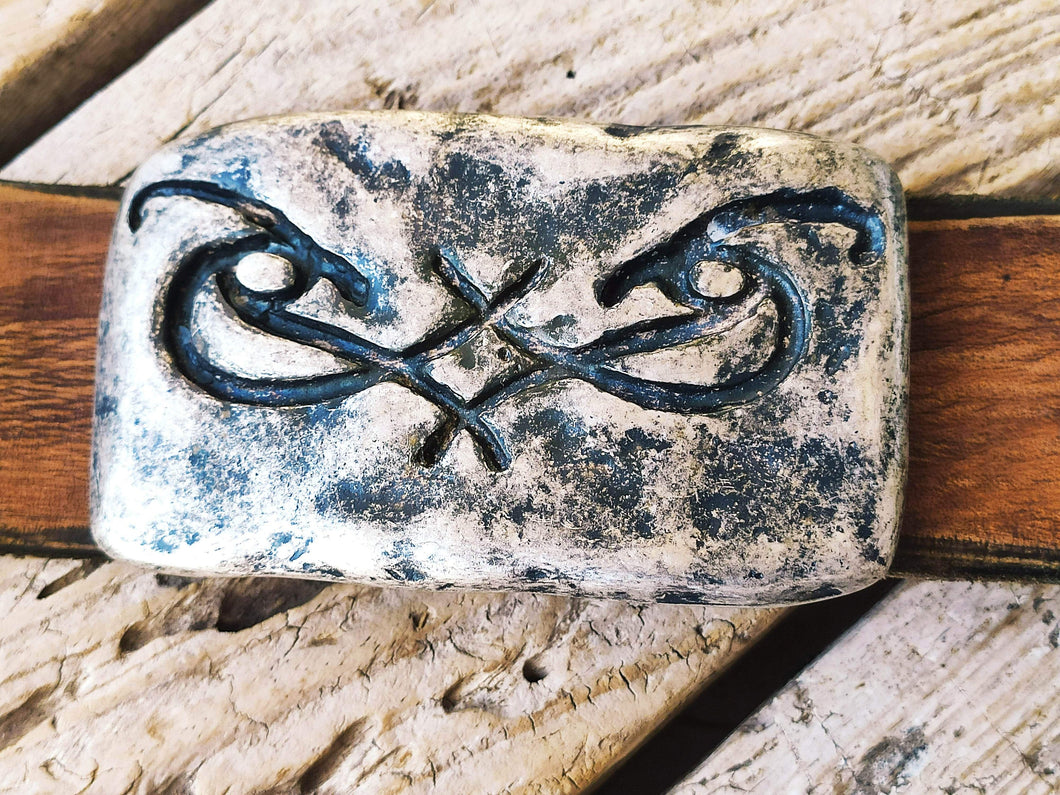 a ishaor original buckle with a double logo that together creates a new shape The buckle is plated with real silver and upgrade any belt