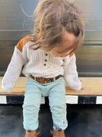 Custom brown leather belt with unique design and shades of brown made for babies and kids, the best gift for father and son to wear together