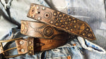 With its rich brown tone and steampunk gear details, this belt is the perfect addition to any biker or steampunk enthusiast's wardrobe.