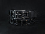 This unique, riveted belt is one of kind, and sure to get you noticed. Worn by Adrian Grenier on the TV show "Entourage", this belt has the ultimate attention-grabbing, bad-boy vibe. Each part is made by hand, the pieces spaced one inch apart and the rivets are gunmetal color on the outside and black on the inside. Meticulously crafted and carefully thought out, this original belt is one of the designs, I am most proud of. It represents the nature of this shop, which is standout, original design. A great gift for true men of style.