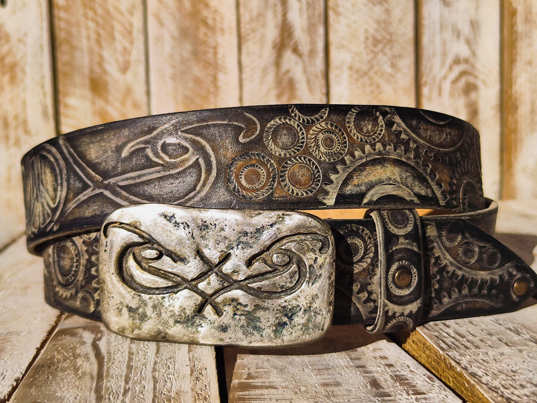Discover the epitome of craftsmanship and style in this exceptional handmade leather belt by Ishaor. Uniquely designed, this white belt features a captivating brown vintage wash that exudes an effortlessly cool charm. The intricate motorcycle gear shape stamps bring a touch of adventure to the piece, making it an ideal accessory for those with a passion for motorcycles and the open road.