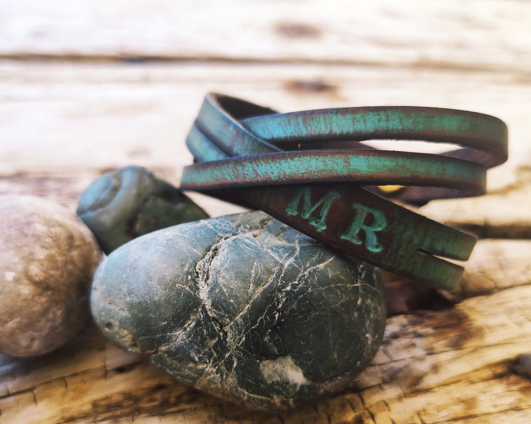 Turquoise leather wrap bracelet with brown wash and personalized with name its for sure the beat Christmas \ birthday gift that you can give to somebody you love.