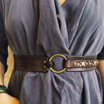 Handmade leather hand sewn, hand cut, hand punched and hand stitched in Tel Aviv completely by hand without the use of machines or electricity. All of our products are made with a low carbon footprint production; Handmade Distressed Leather belt with the decorative bronze stud is cut out of a full grain cow leather. The belt is dyed in a brown color.