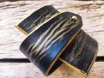 Wide black leather wrap bracelet with gold wash elegant statement bracelet design with unique geomtric shape and option to personalized