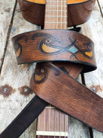 Ishaor leather guitar strap made by hand with unique designs.