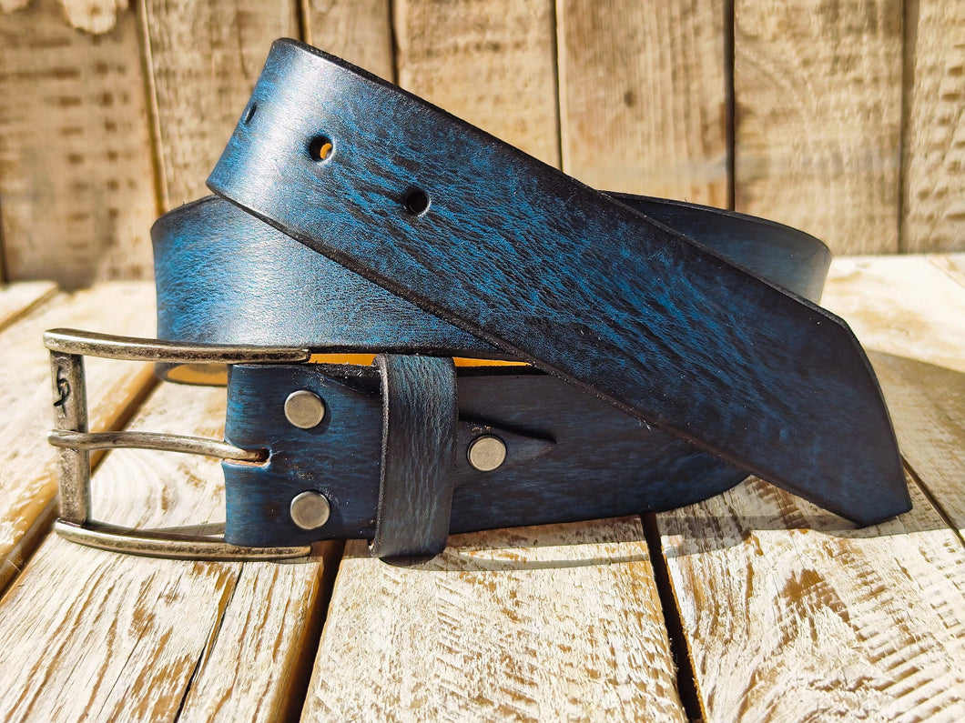 Introducing our Handmade Leather Belt by Ishaor, a perfect blend of style and craftsmanship. This belt features a unique blue and black wash that adds a touch of sophistication to any outfit, making it a versatile accessory for both casual and formal occasions.