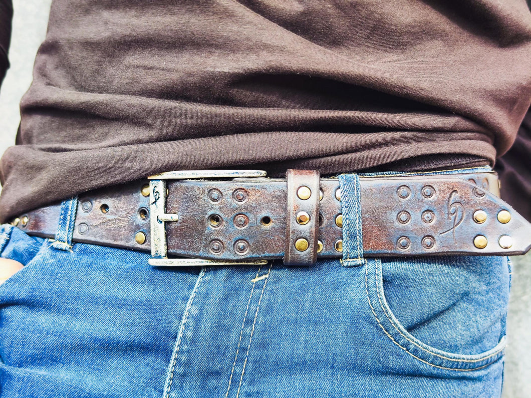 This belt is a versatile accessory that complements jeans, casual outfits, or alternative styles. Its handcrafted nature ensures a unique and long-lasting product.